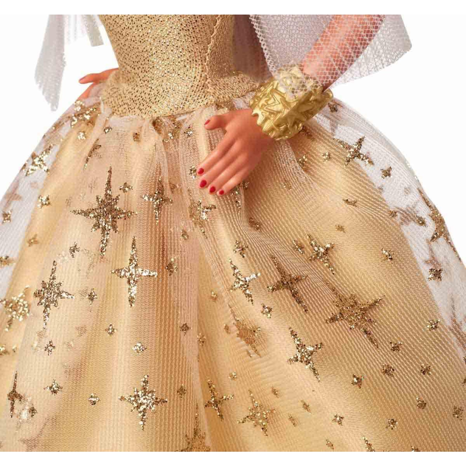 Barbie 2023 Mutlu Yıllar Bebeği, yıldız işlemeleriyle ışıldayan altın rengi elbisesi ile mevsimin ruhunu yansıtır.