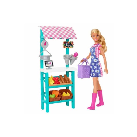Çocuklar, Barbie Çiftçi Pazarı oyun seti ile pazar alışverişi eğlencesini keşfedebilir.