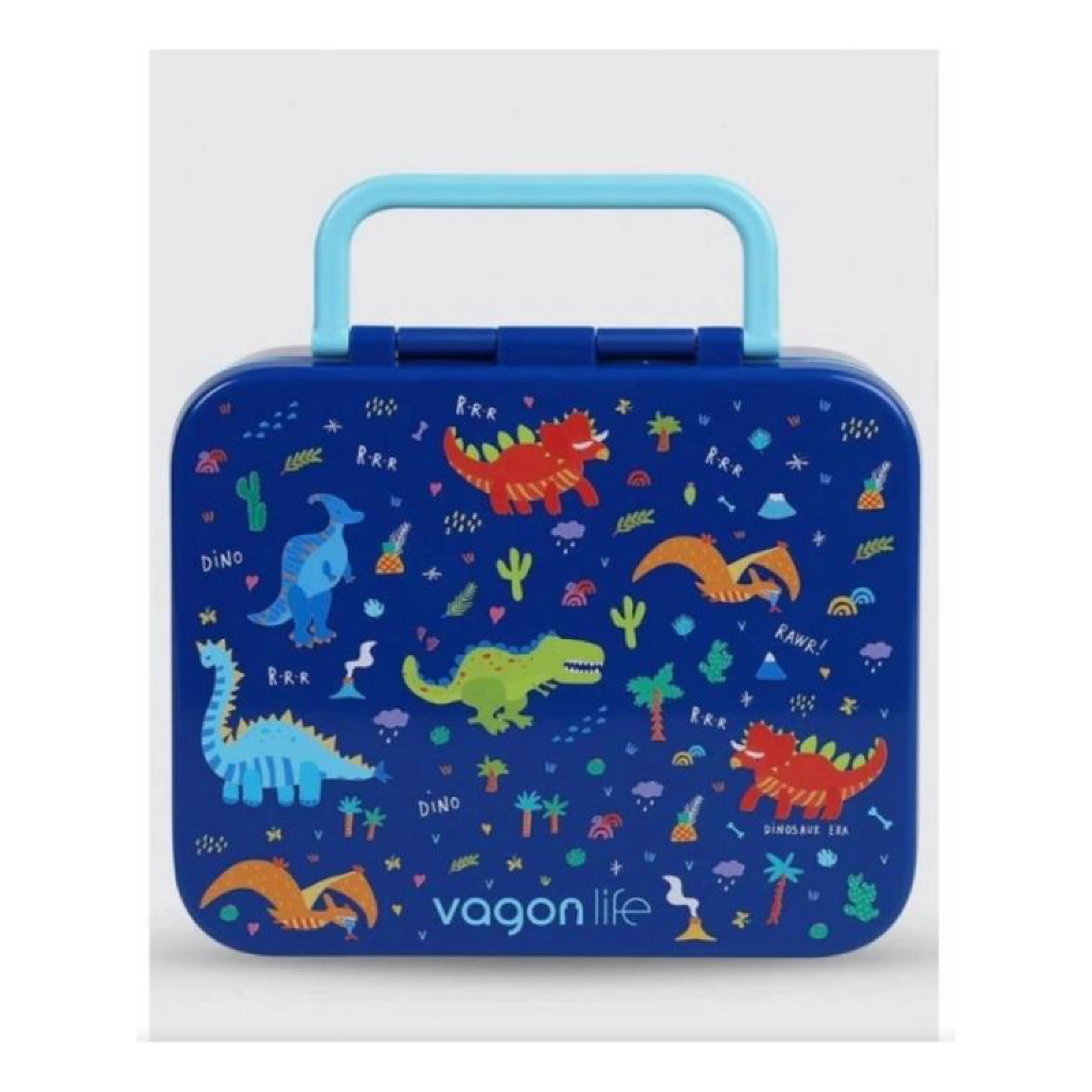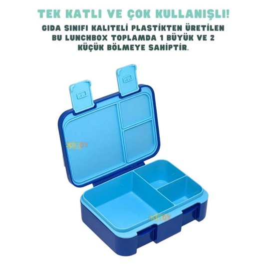 Bento 1000ml Lunchbox 3 Bölmeli Çocuk Sefer Tası Yemek Kutusu Mavi Dinozor VGN-092