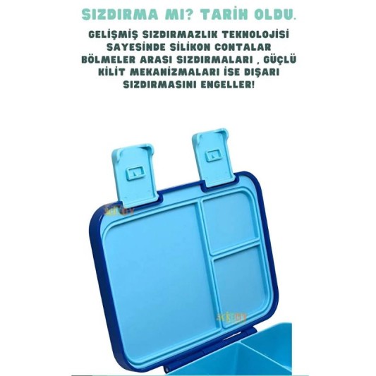 Yemek kutusunun kapağının içinde bulunan Gıda Sınıfı Silikon Kaplama ile bölmeler arası sızdırmayı engellemektedir.