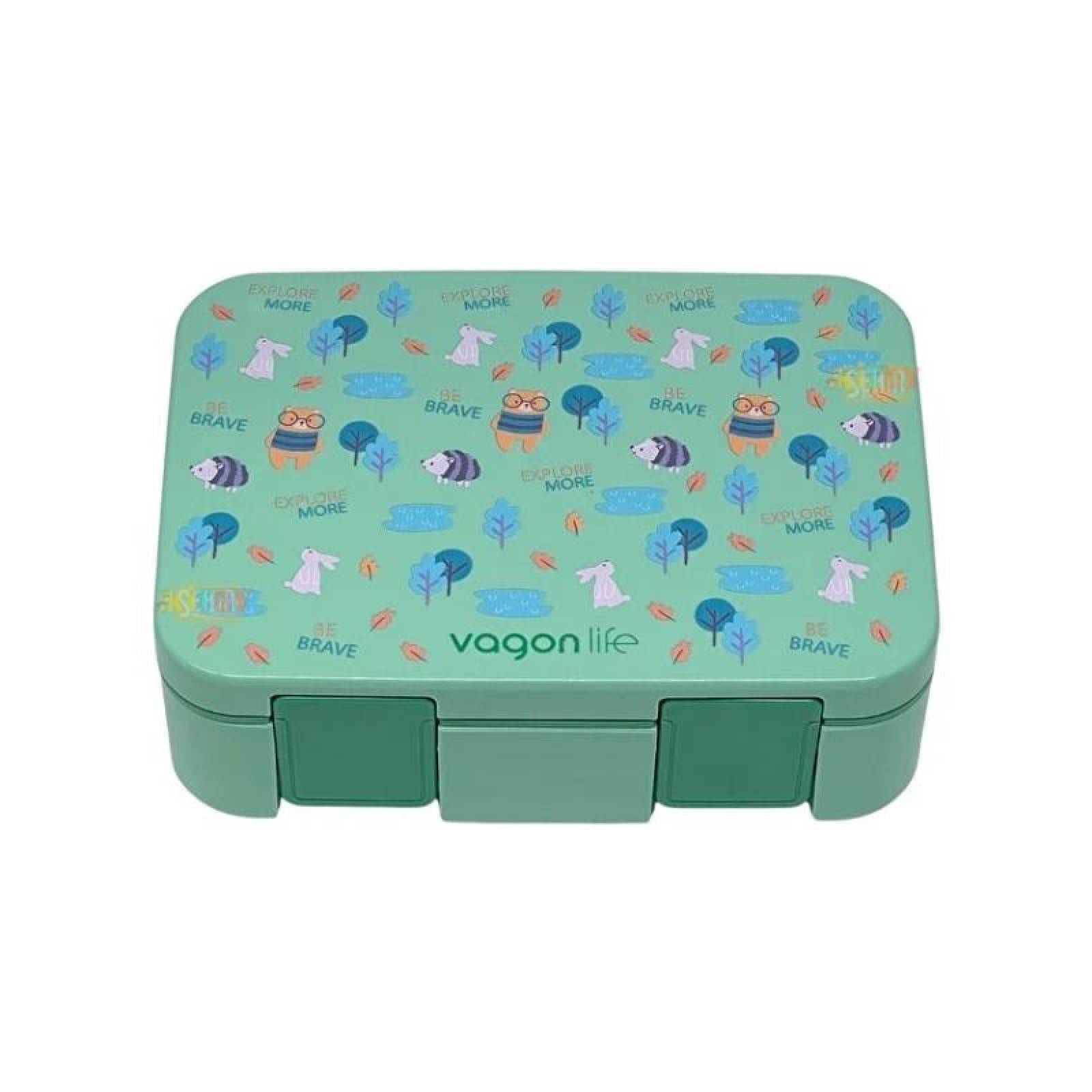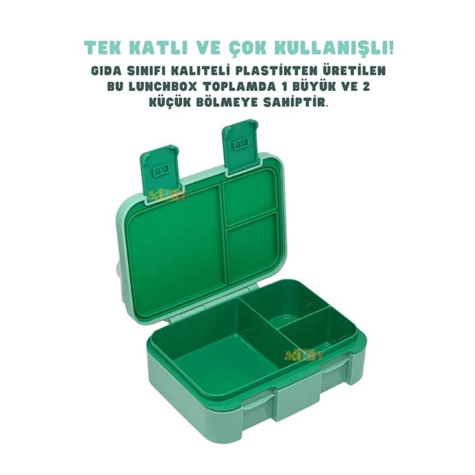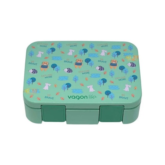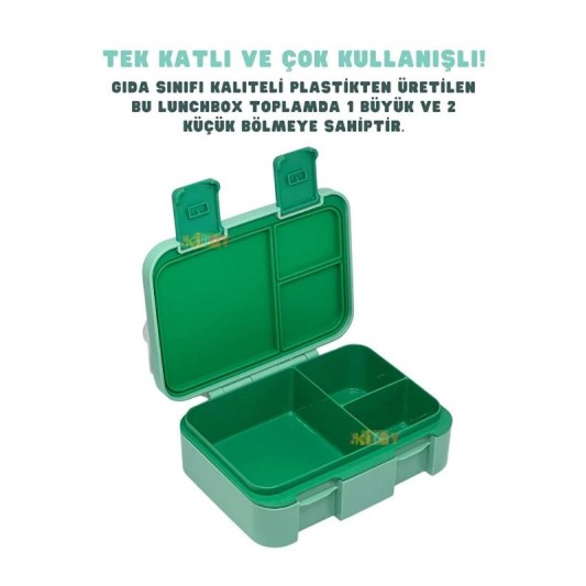 Bento 1000ml Lunchbox 3 Bölmeli Çocuk Sefer Tası Yemek Kutusu Yeşil Orman VGN-092