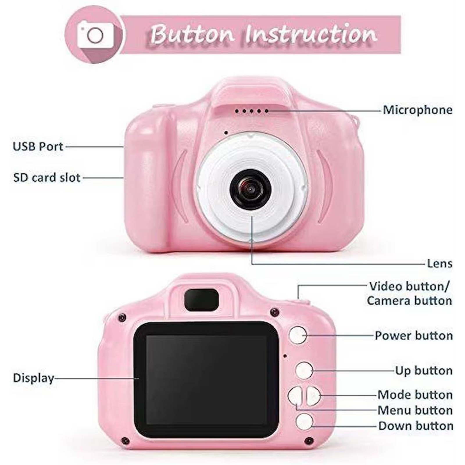 Çocuklar İçin Mini Dijital Fotoğraf Ve Video Makinesi - Pembe