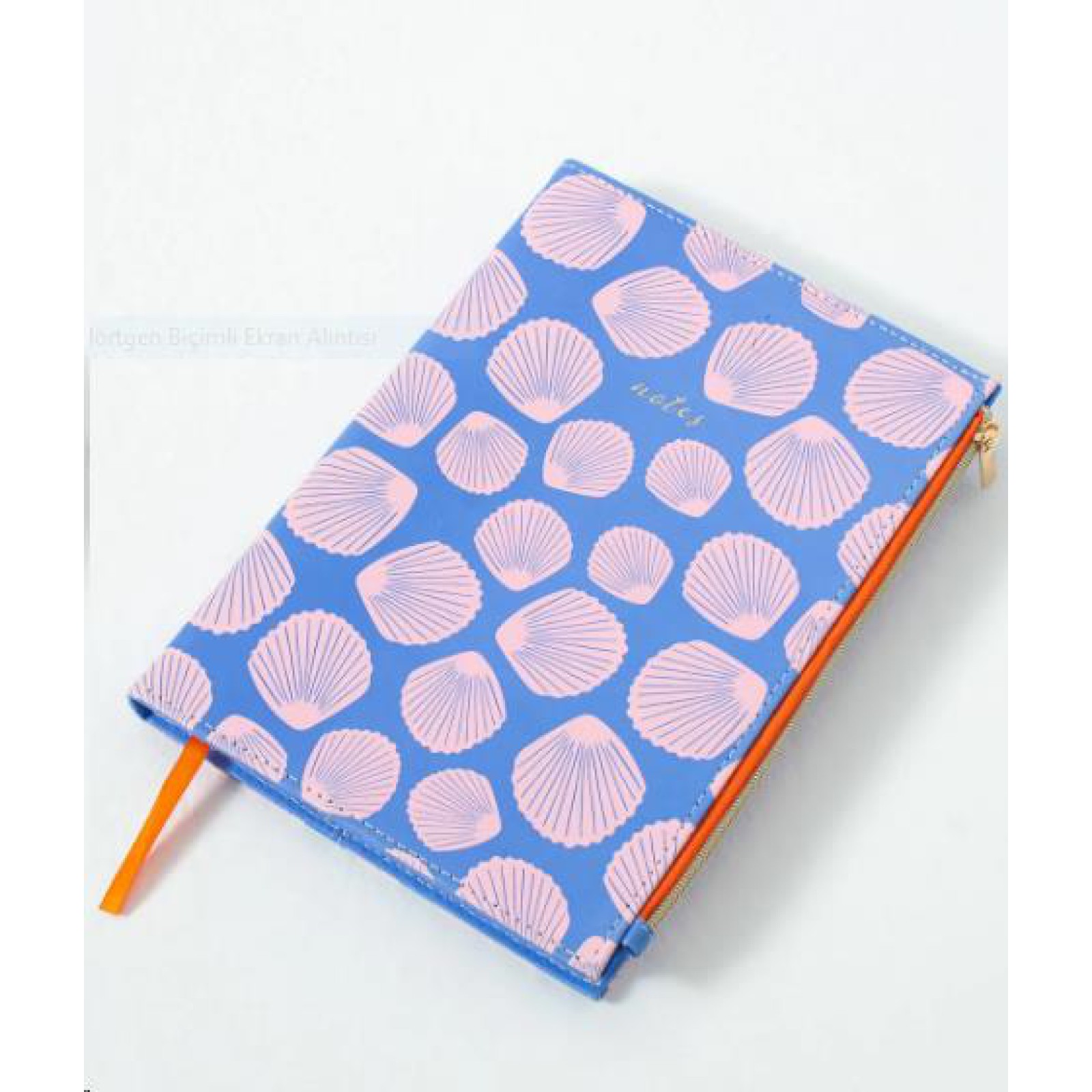 Deniz Kabuğu Desenli Fermuarlı Cepli A5 Not Defteri DKS-3001-7