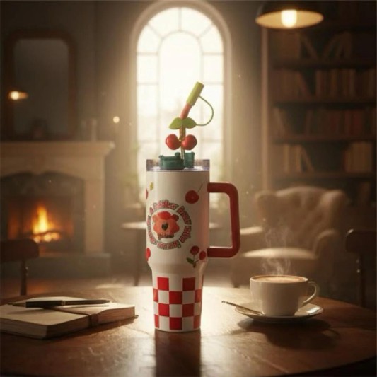 ·Üstte çıkarılabilir kiraz figürlü pipet süsü
