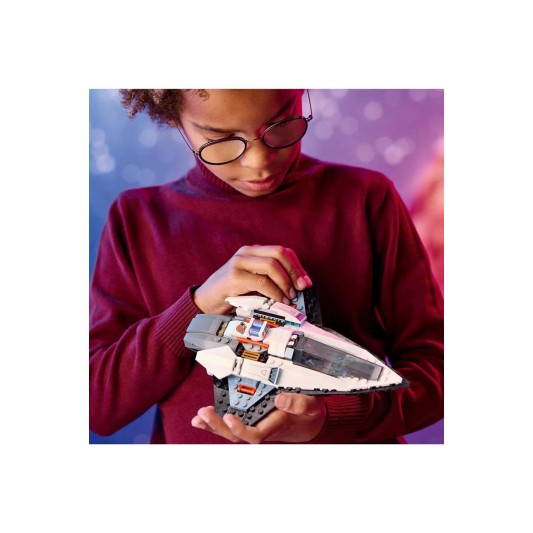 ·Sette ayrıca uzay mürettebatı minifigürü için bir jet çantaya dönüşebilen bir dron robot bulunur.