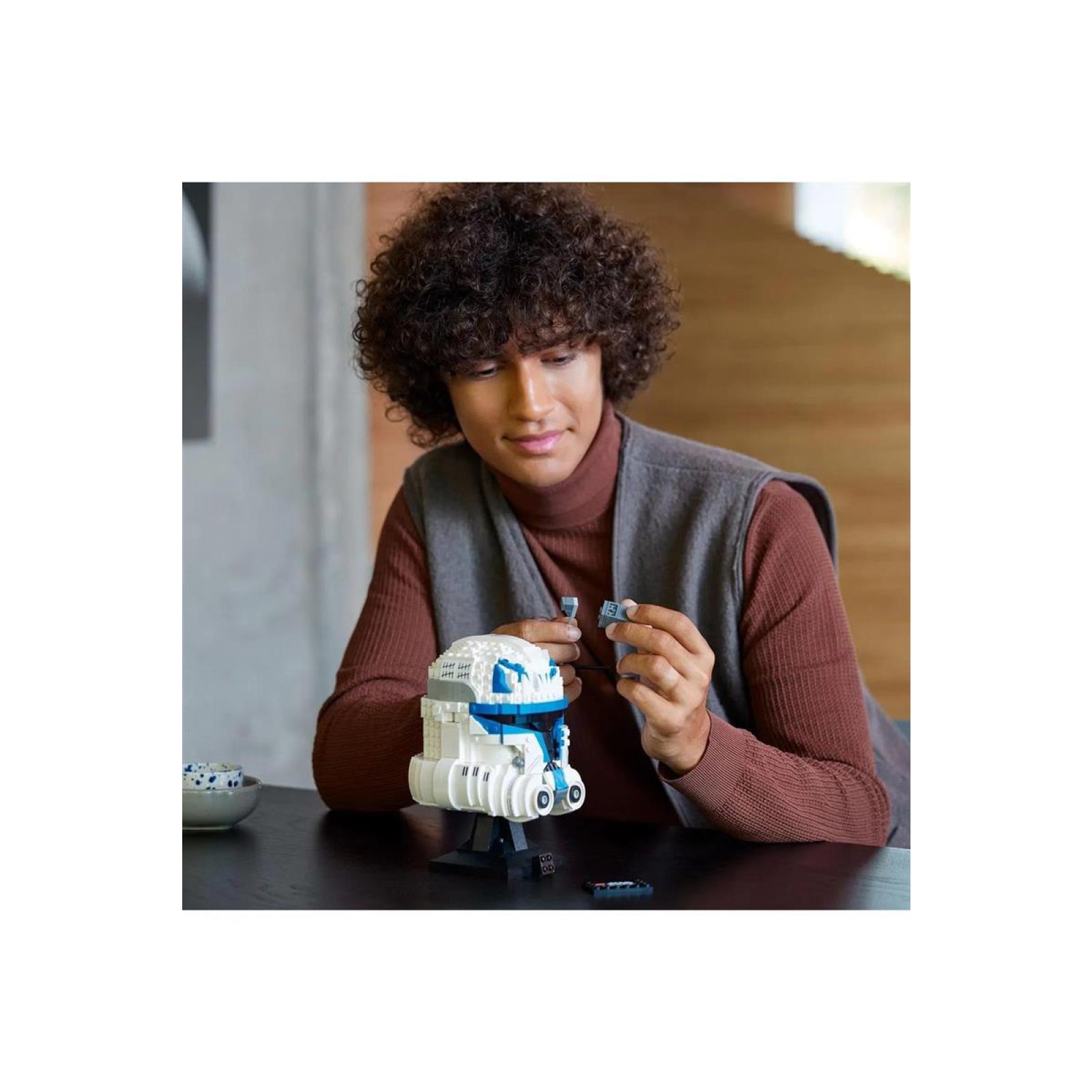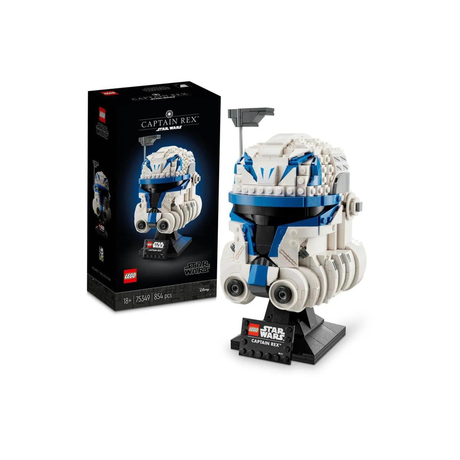 ·Sergilemek için yapıldı – Yüzbaşı Rex’in kaskının orijinal detaylarını LEGO® yapım parçalarıyla canlandırırken dramatik Star Wars: Klon Savaşları sahnelerini yeniden yaşayın ve parçalarla inşa edilen, isim levhalı stantta sergileyin