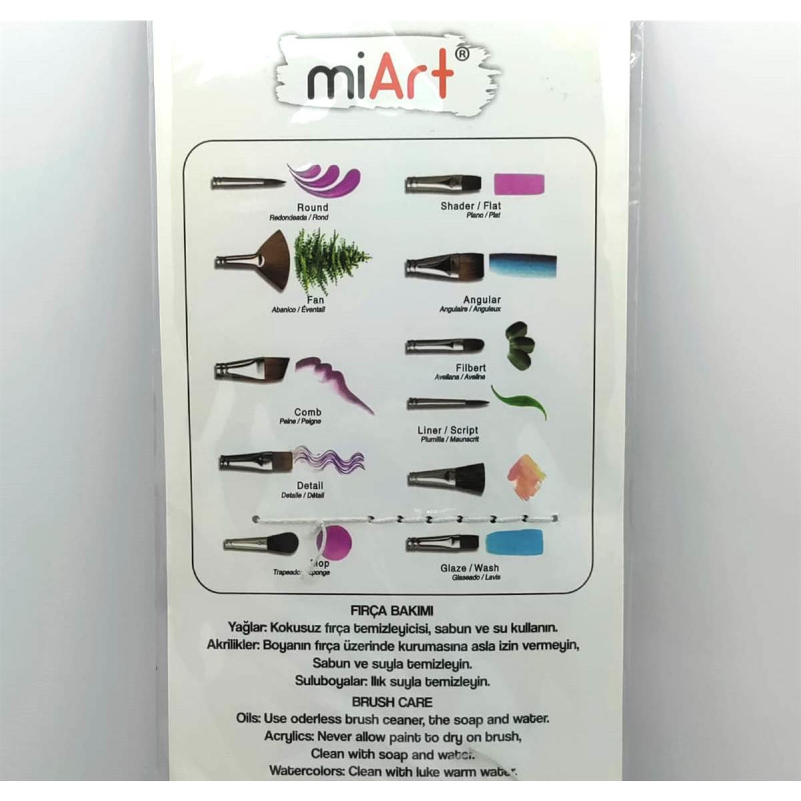 Bir pakette 7 adet farklı ölçülerde fırca vardır.