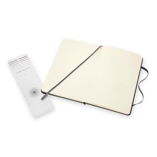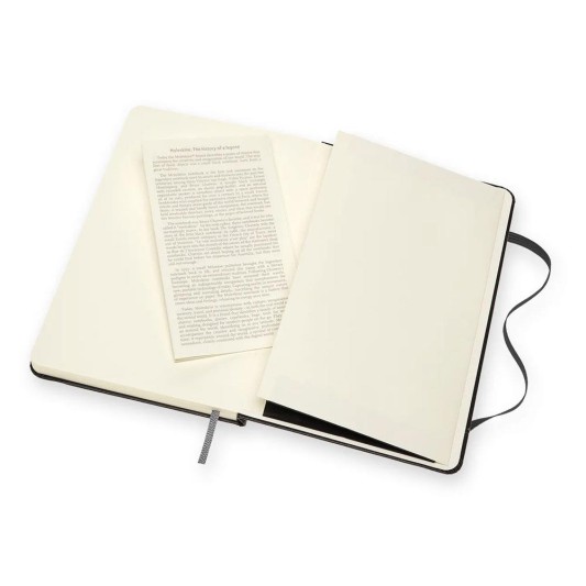 ·Her Moleskine günlüğünün bir şerit yer tutucusu ve Moleskines geçmişi olan çıkarılabilir bir kartı vardır.