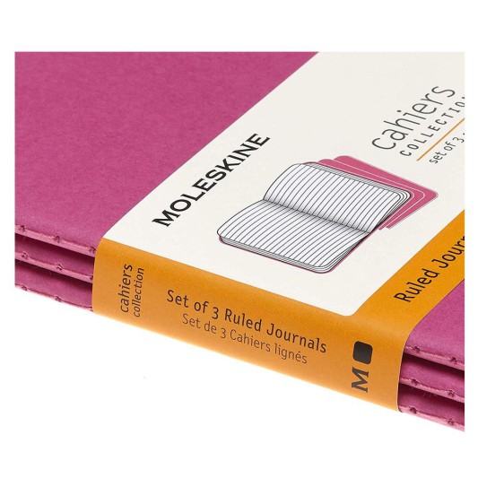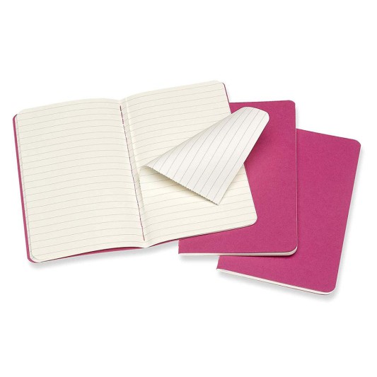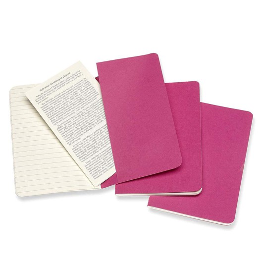 ·Kinetic Pink karton kapaklı üç Moleskine Pocket Ruled Cahier günlüğü seti.