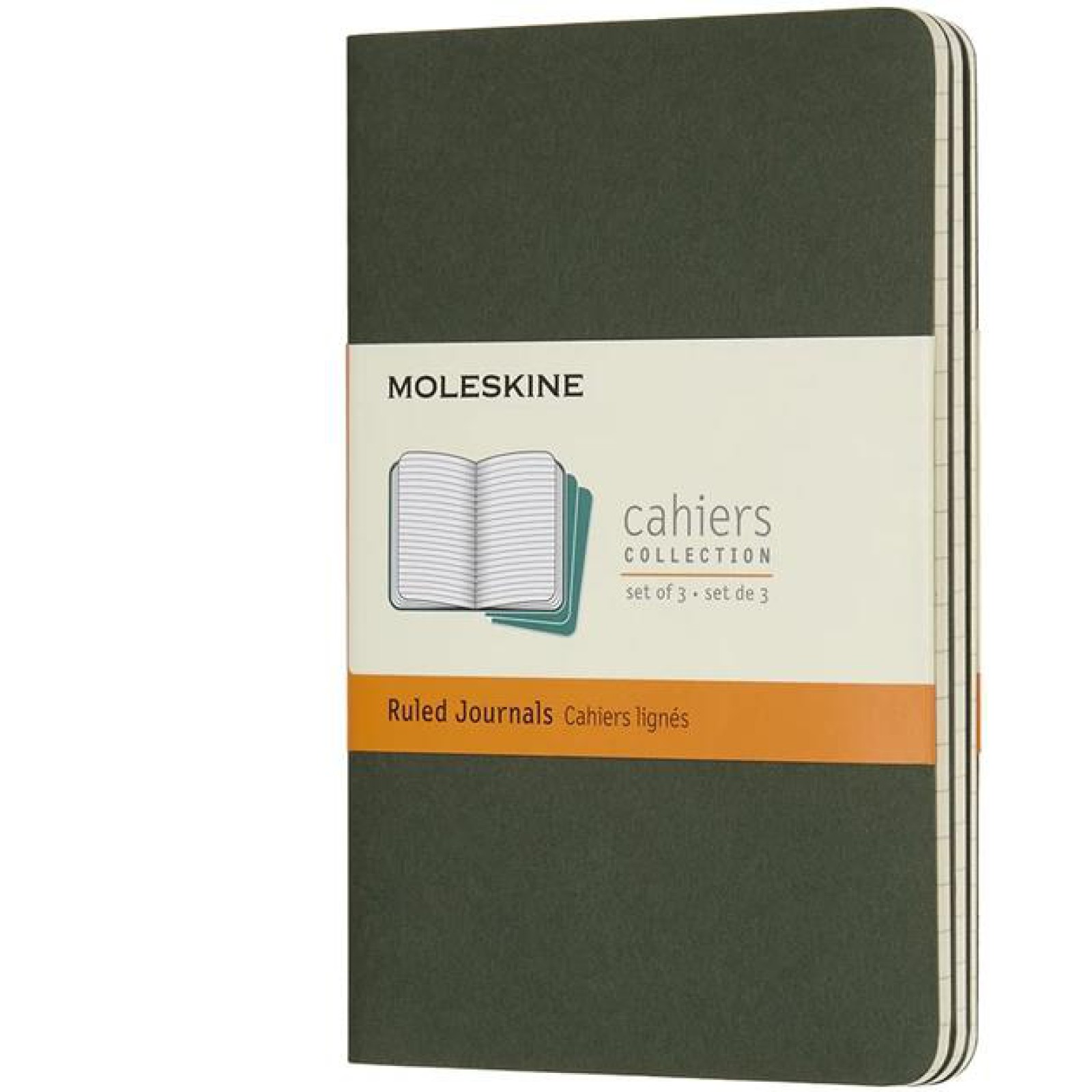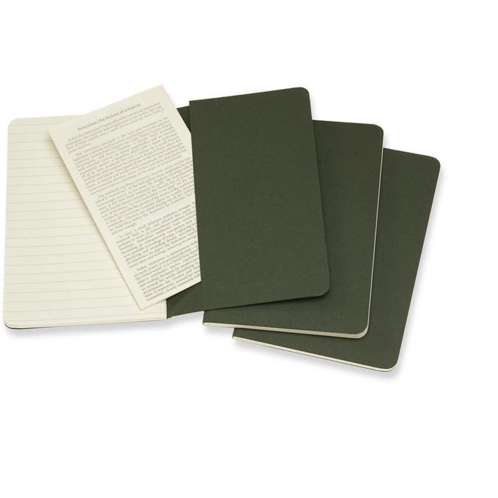 ·Mersin Yeşili karton kapaklı üç Moleskine Pocket Ruled Cahier günlüğü seti.