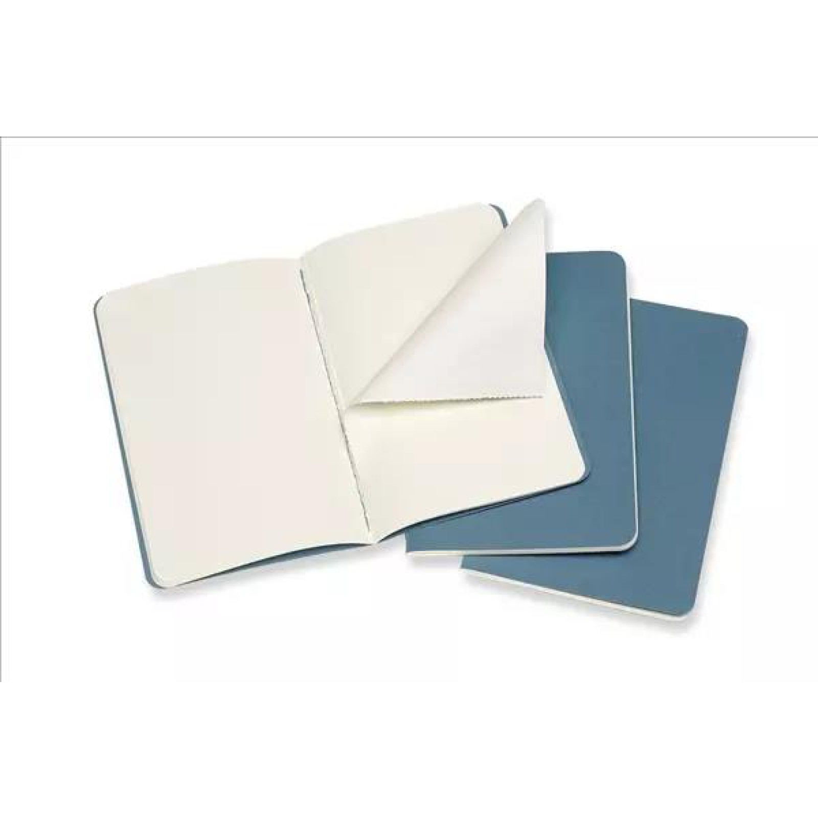 ·Canlı Mavi karton kapaklı üç Moleskine Pocket Ruled Cahier günlüğü seti.