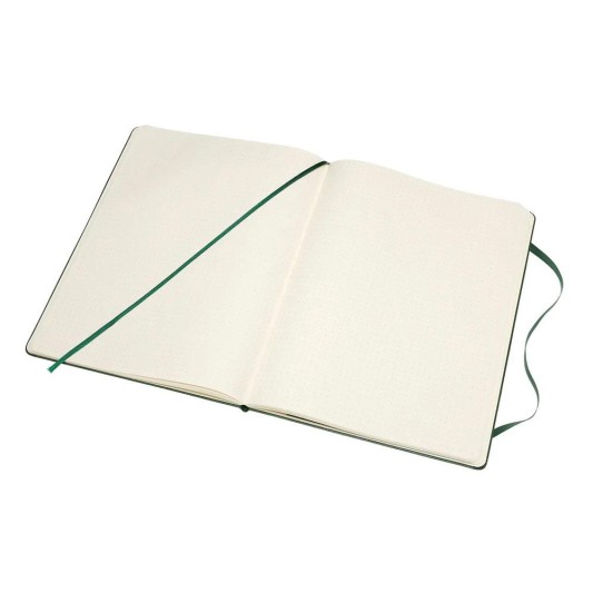 ·Bu Moleskine Ciltli Ekstra Büyük Noktalı Myrtle Green Defter yuvarlatılmış köşelere ve elastik bir kapağa sahiptir.