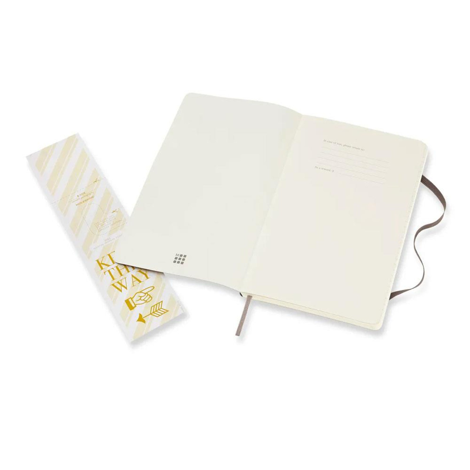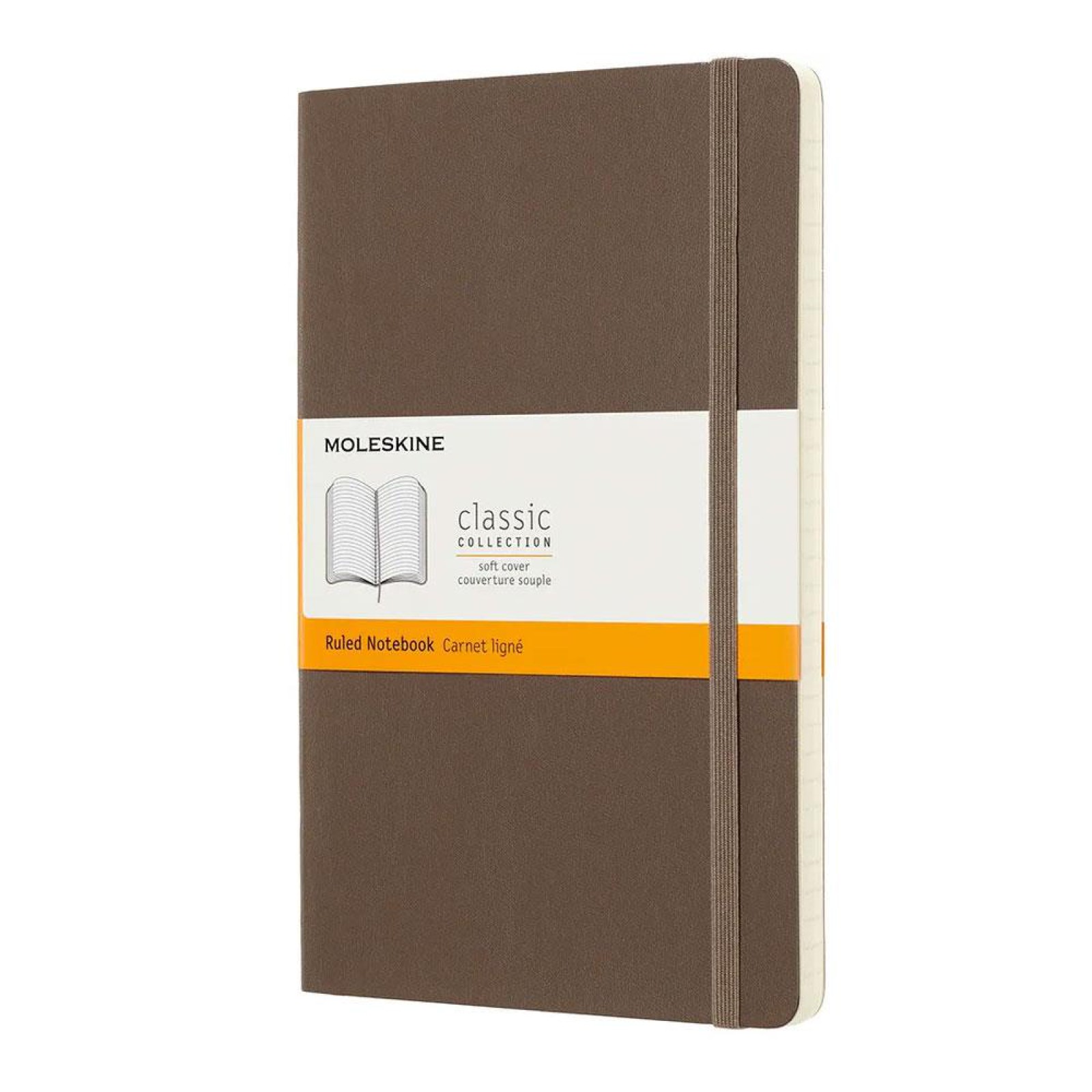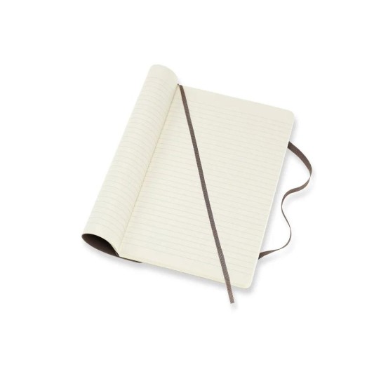 - Moleskine'in yumuşak kapaklı kahverengi defteri. Asitsiz sayfalar, yuvarlatılmış köşeler, elastik kapatma ve şerit kitap ayracı özelliklerine sahiptir.