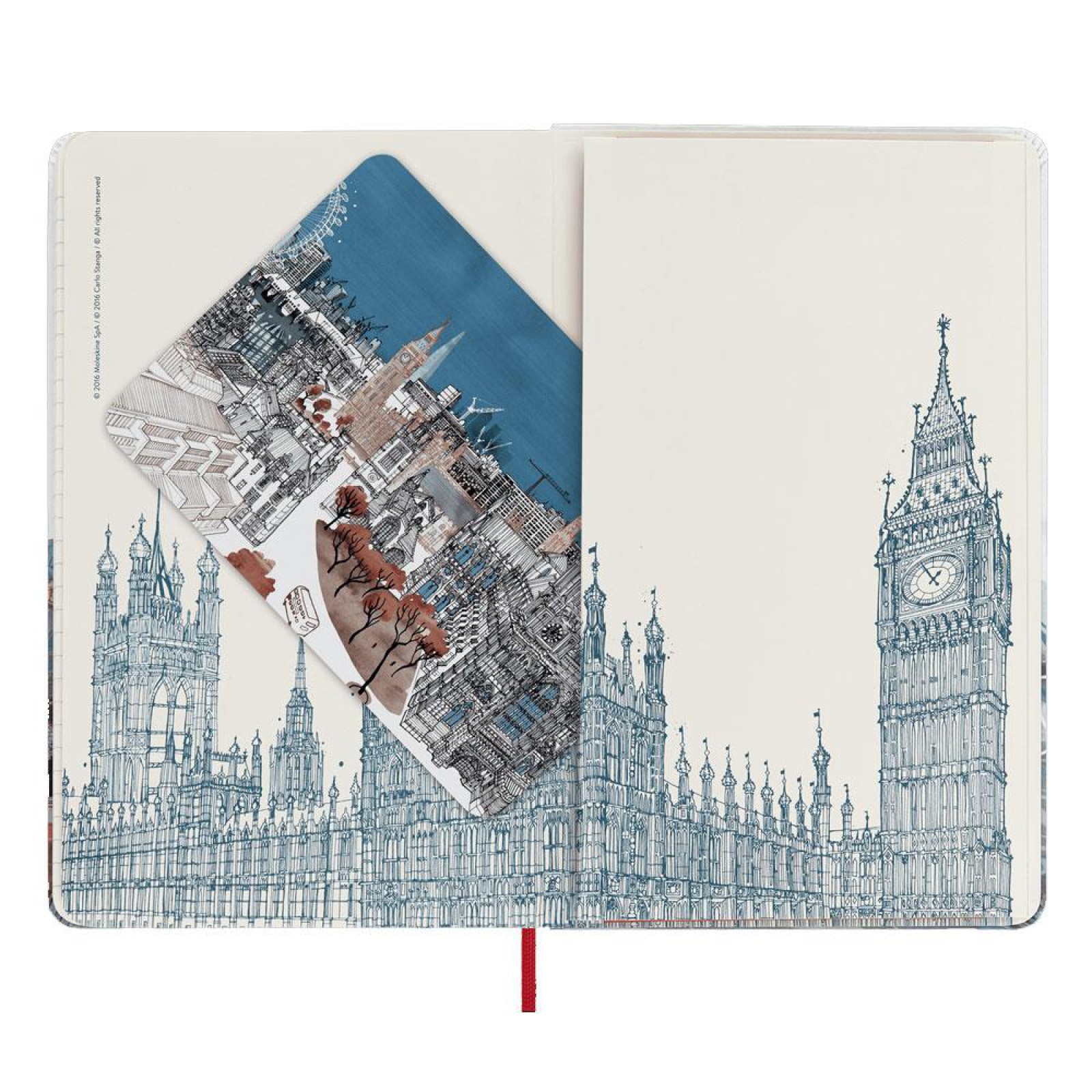 ·Bu not defterleri, kapakta ve sayfa altlarında yer alan karmaşık ve renkli Carlo Stanga çizimleriyle Londra, Milano ve New York'a saygı duruşunda bulunuyor.