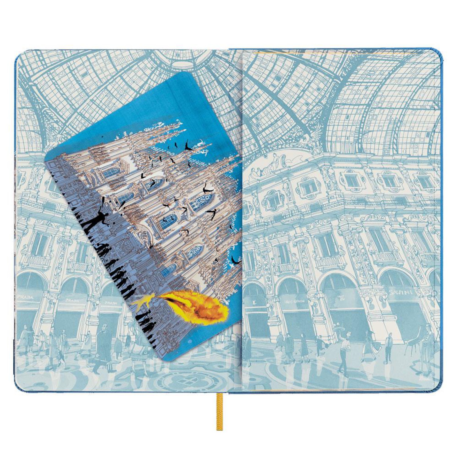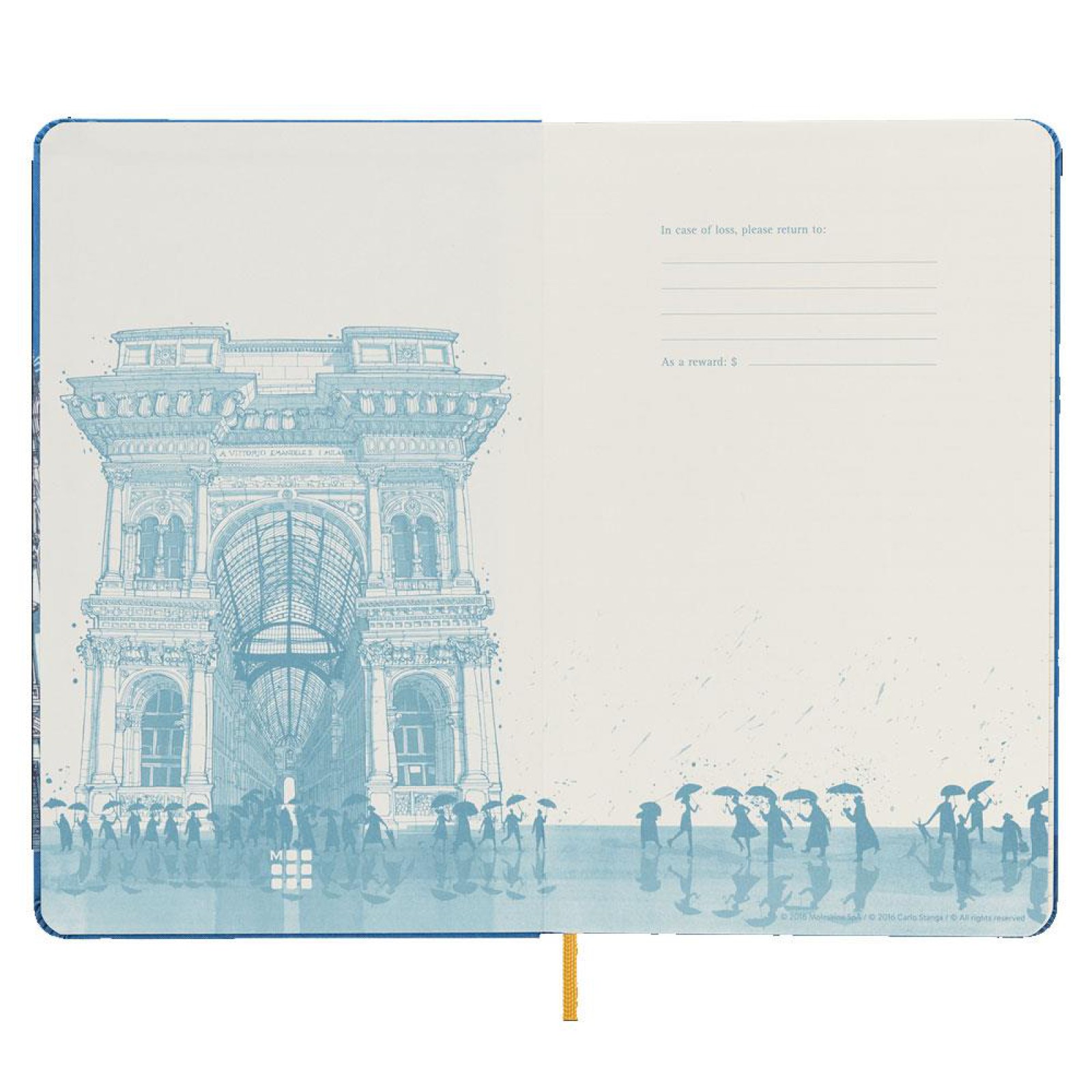 ·Bu not defterleri, kapakta ve sayfa altlarında yer alan karmaşık ve renkli Carlo Stanga çizimleriyle Londra, Milano ve New York'a saygı duruşunda bulunuyor.