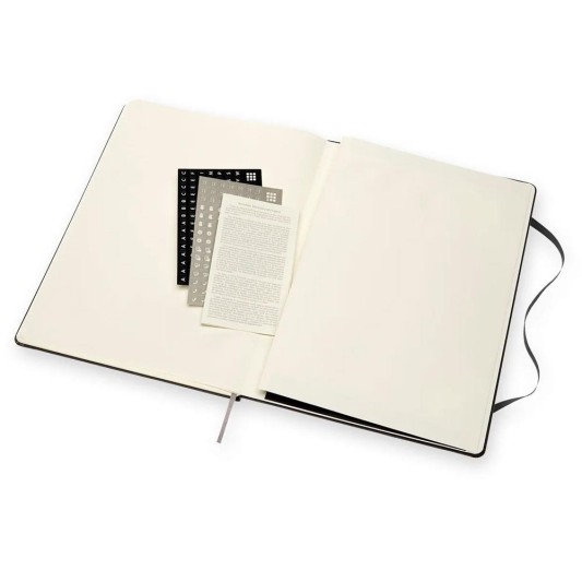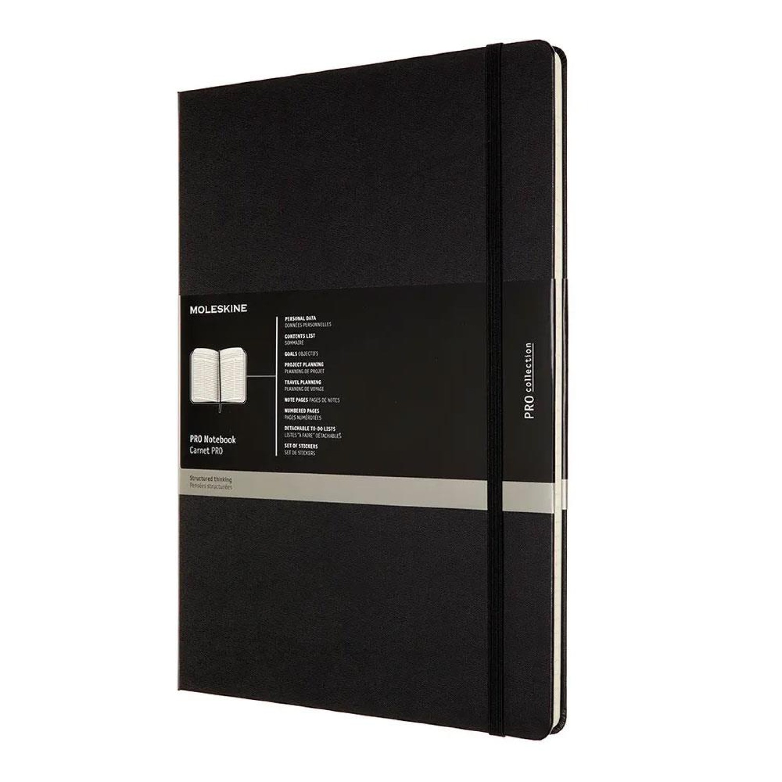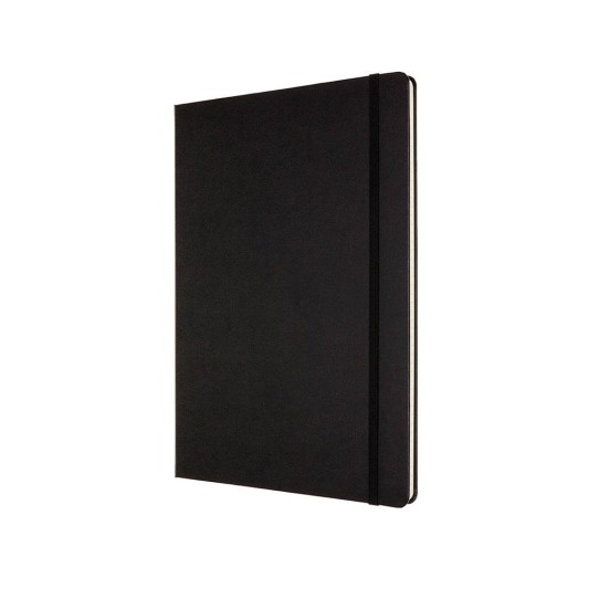 ·Bu siyah Moleskine PRO A4 dizüstü bilgisayar, sert bir kapak, yuvarlatılmış köşeler, elastik kapatma, şerit yer imi, karton ve kumaştan çift iç cep,