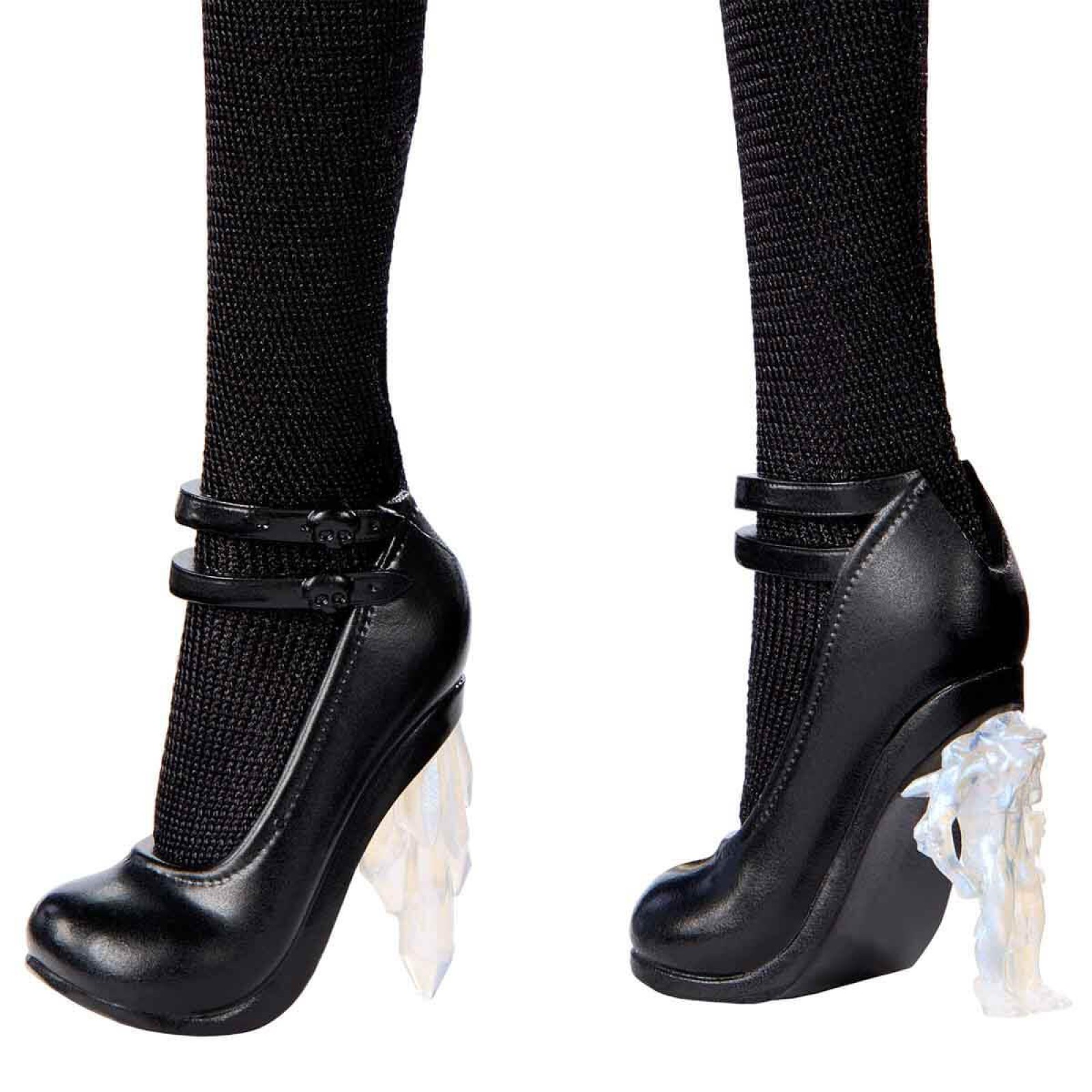 Kasvetli şık görünümünü dikkat çekici kemeri ve Monster High küpeleri tamamlıyor. Tarzına uygun ayakkabılarıyla karanlık gecelere ayak uydurmaya hazır!