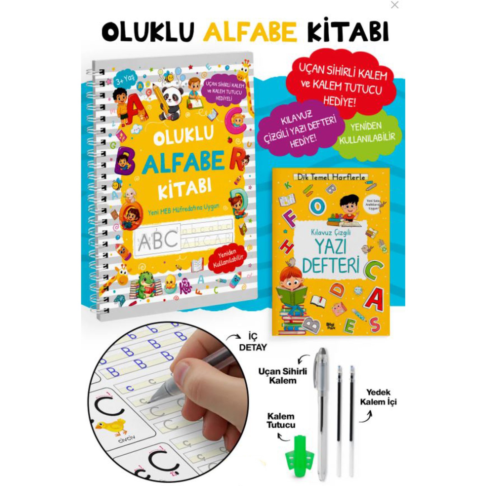 Oluklu Alfabe Kitabı / Uçan Sihirli Kalem ve Kalem Tutucu Hediyeli / 3+