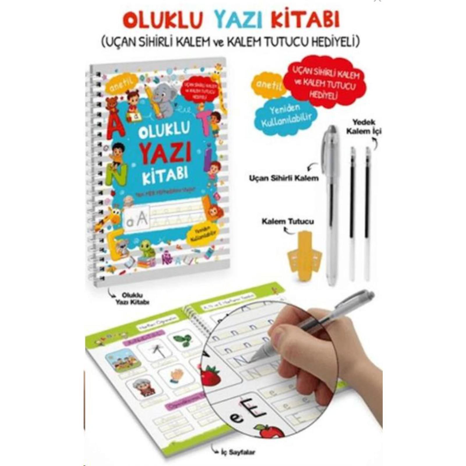 Ürün Adı: Oluklu Yazı Kitabı (anetil) / Uçan Sihirli Kalem ve Kalem Tutucu Hediyeli