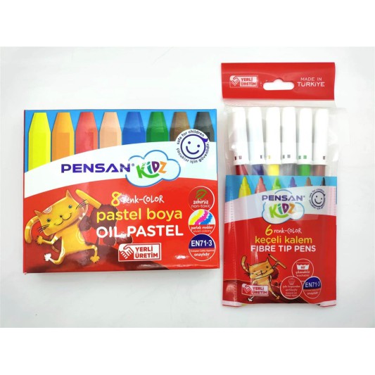 Pensan 8 li pastel boya ve 6 lı keçeli boya seti