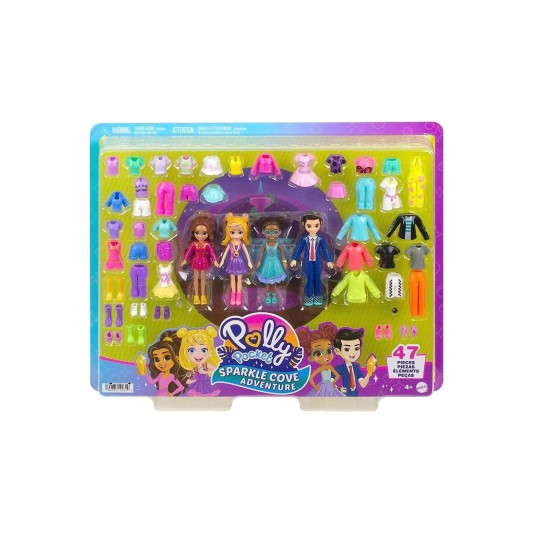 Polly Pocket Sparkle Cove Macera Moda Paketi, 4 oyuncak bebek ve 45'ten fazla ek moda parçasıyla bir stil macerasıdır!