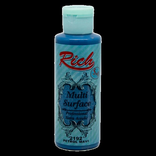 Her türlü yüzeye uygulayabileceğiniz, aynı zamanda birçok üstün özelliğe sahip muhteşem bir ürün. Rich Multi Surface Kullanım Alanları: * Ham mdf ve cilalı parlak mobilyalarınızda yüzey astarı gerektirmeksizin, uygulama yapabilir * Cam üzeri çalışmalarınızda mükemmel örtücülük ve fırınlanmadan elde ve makinada yıkayabilir * Kumaş boyama çalışmalarınızda yumuşak tuşesi elde ve makinada yıkanabilir * Seramik boyama çalışmalarınızda * Dekoratif duvar boyama çalışmalarınızda * Kanvas tuvallerinizde * Her türlü kâğıt ve karton üzeri boyama çalışmalarınızda * Metal yüzeylerdeki çalışmalarınızda