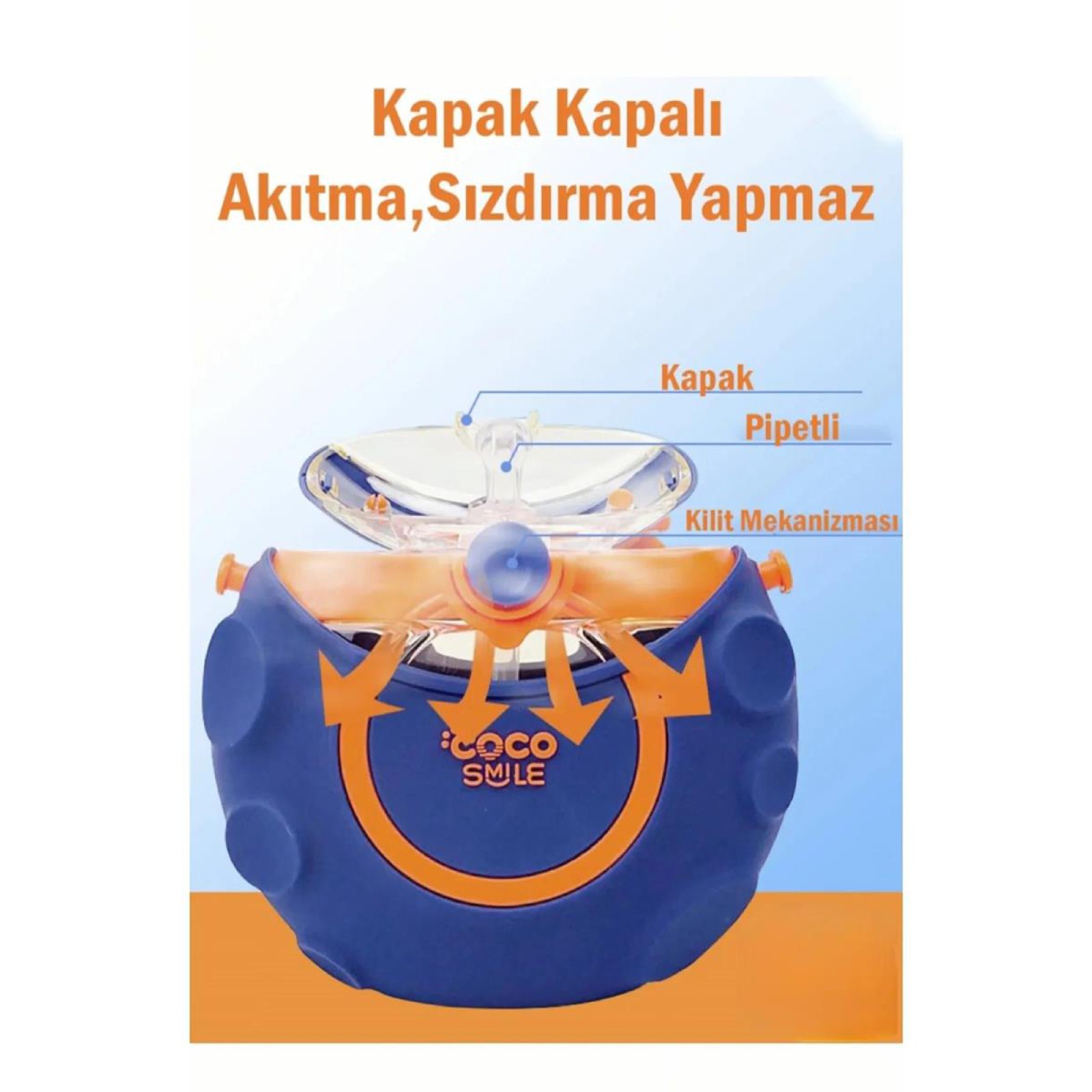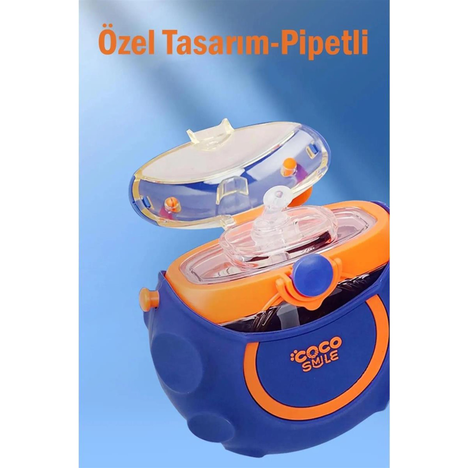 Vagonlife CocoSmile 630ml Silikon Uzay Tema Kılıflı Pipetli Askılı Tritan Çocuk Matarası CS0006