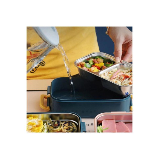 VVagonlife Taşınabilir Üç Bölmeli Paslanmaz Çelik Öğrenci Ve Ofis Için Yemek Sefer Tası Koyu Mavi XC-363