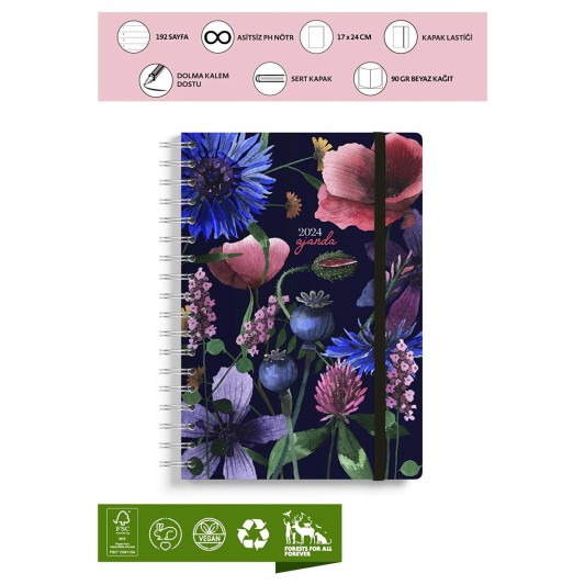 Victoria's Journals Spiralli 2024 Haftalık Ajanda 17x24 (9198)