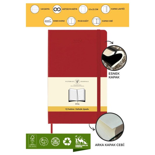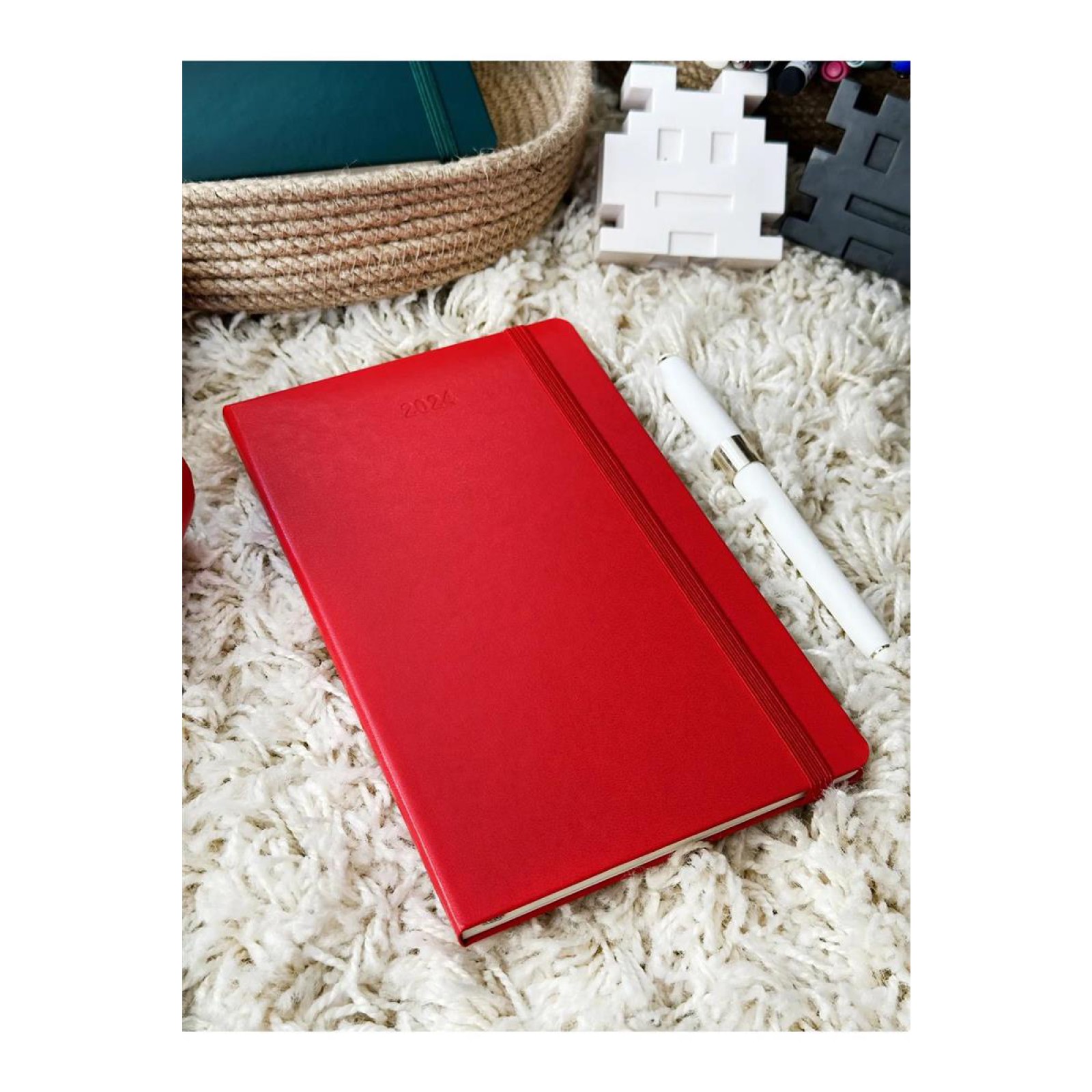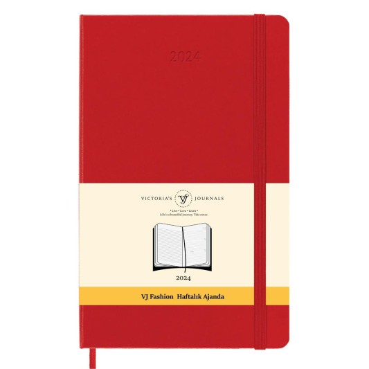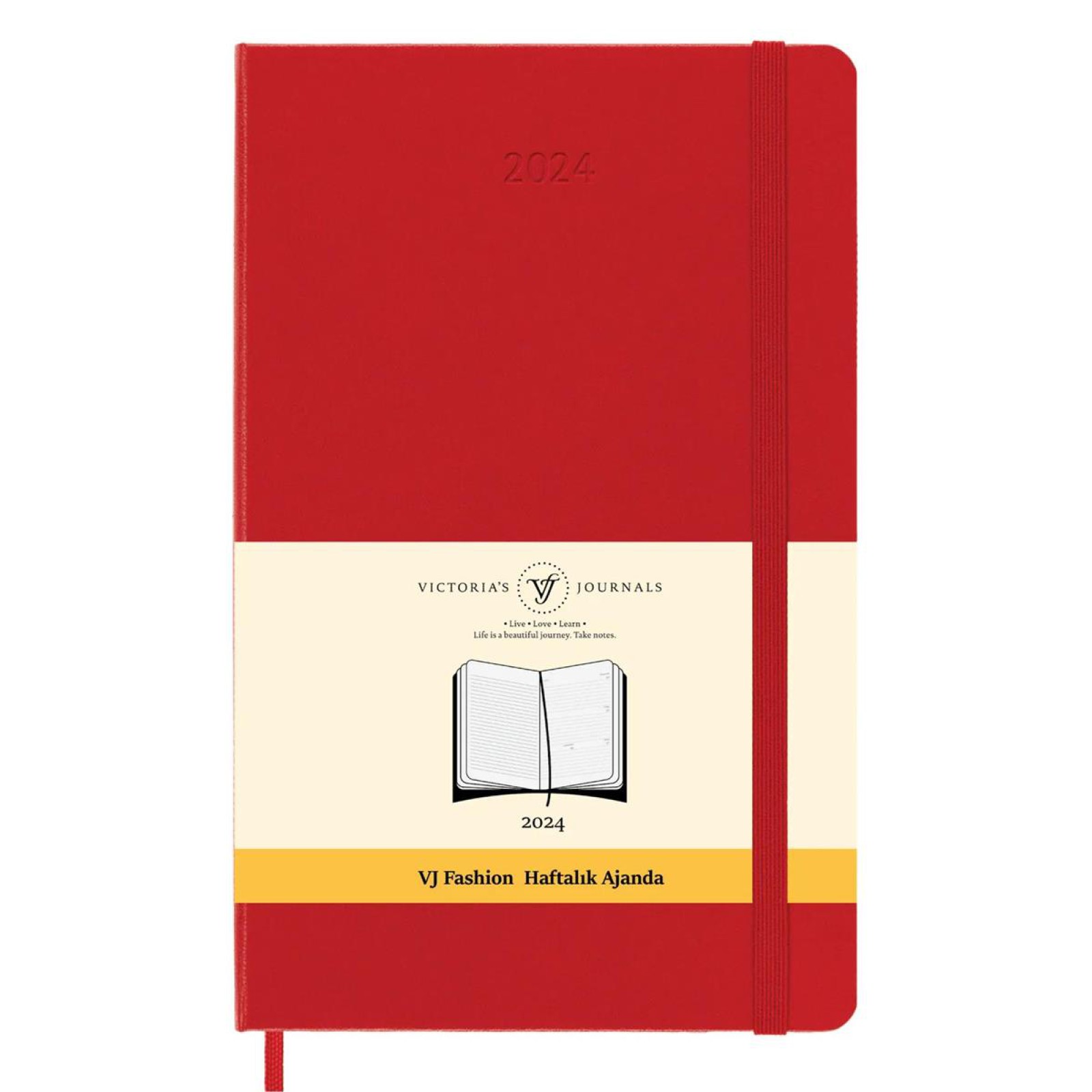 VJ Classic-2024 Haftalık Ajanda 13x21 cm Esnek Vegan Deri Kapaklı Kırmızı 9164